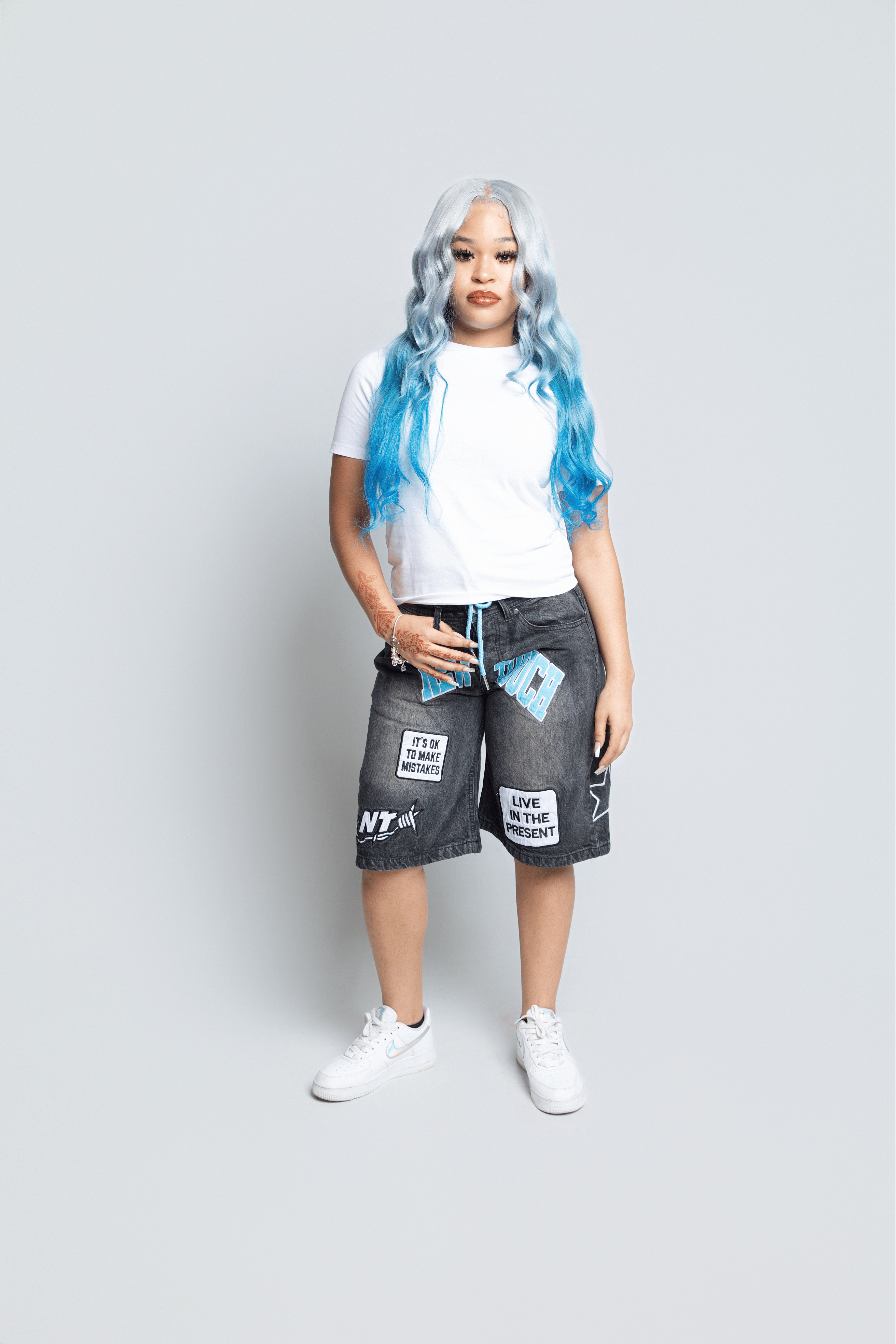 - Fit: Long, wide-leg, relaxed streetwear silhouette.